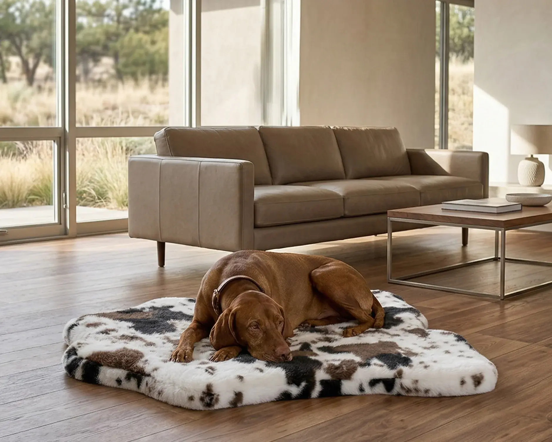 The unique shape creates a resting space that lets your dog stretch out naturally. The ultra-plush, high-pile fur, makes this bed irresistibly soft. The supportive foam insert provides gentle cushioning and structure, helping distribute weight evenly.