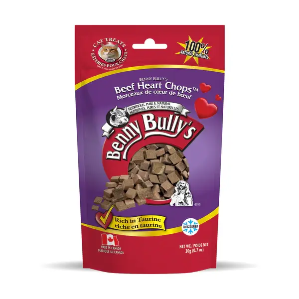 Introducing our new and delicious Benny Bullys® Pure Beef Heart Chops cat treats! Made from lean and nutrient-dense beef heart, these treats are packed with essential vitamins and minerals that are vital for your cat's health.