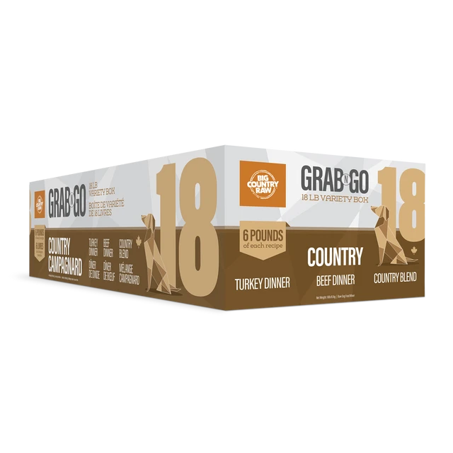 A turkey and beef box for dogs that have chicken sensitivities. Contains 6lbs each: Country Blend, Beef Dinner and Turkey Dinner