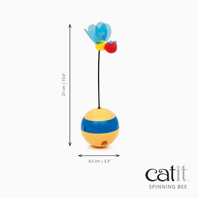 At the push of a button, the Catit Spinning Bee will start to rotate rapidly, sending out laser beams for your cat to chase after, and dropping cat treats as a reward. Great for highly interactive and rewarding playtime.