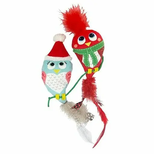 Reattach these festively feathered friends along the hook-and-loop closure for endless fun sparked by fluttering feathers, springy elastic, and KONG North American Premium Catnip. One bird rattles, one has a bell for tinkling temptation.