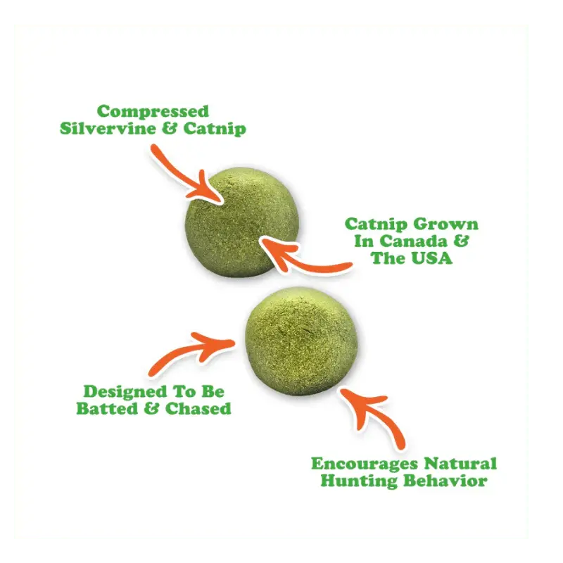 These catnip refills are crafted with top-quality organic catnip. They’re designed to replace worn-out balls to keep toys exciting and new. With these refills, you can seamlessly refill the Purrple Passion Whack ‘n’ Roll cage toy (sold separately).