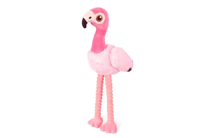 Flora the Flamingo is eager to show off her crinkly legs and wings while your pup searches for her enticing multiple squeakers!