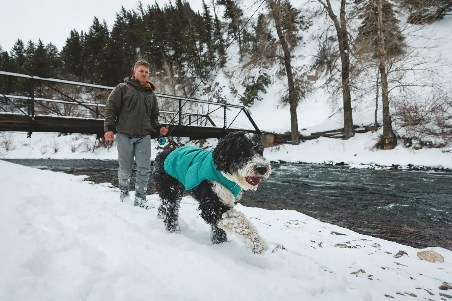 The Quinzee Jacket has a lightweight shell fabric that sheds light moisture, and high-loft recycled polyester insulation that keeps your pup warm. There's also a convenient leash portal on the back, and Integrated stuff sack for compact and easy stow.