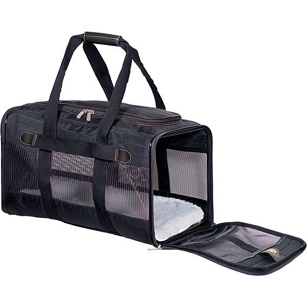 Airline Approved, perfect for traveling by plane or car. Mesh panels offer ventilation, locking zippers for safety. The seat belt security strap doubles as a luggage strap. A soft, cozy, removable, and machine-washable faux lambskin liner is included.